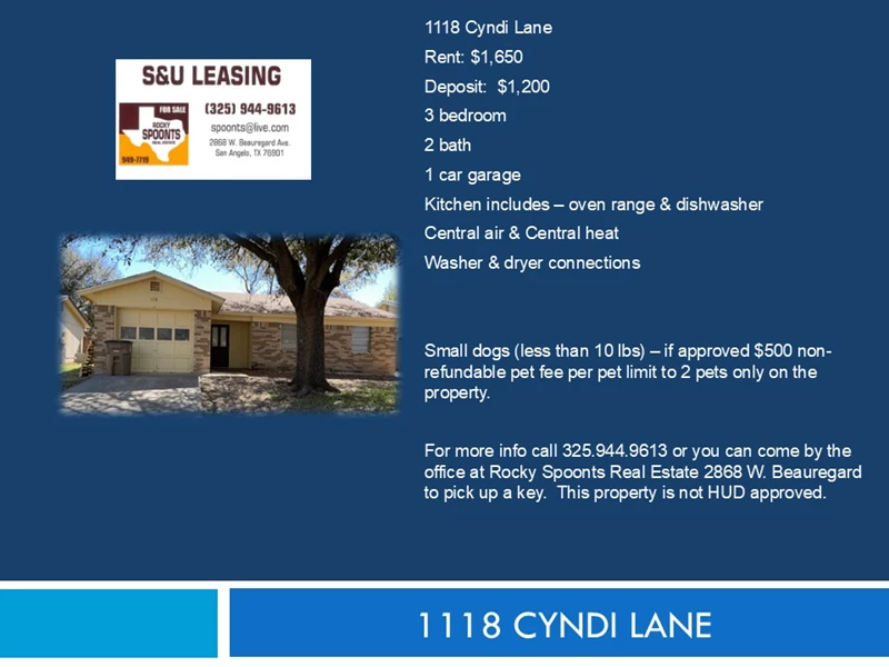 | Rental - 1118 Cyndi Lane San Angelo TX 76903 | |